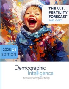 The U.S. Fertility Forecast™ provides companies with detailed projections of U.S. births and is released on a quarterly basis each January, April, July, and October. The accuracy rate for our forecasting model for the total number of births in the United States is typically above 98%. Our forecast products are not just a report. Alongside the written publication, we also provide detailed data tables formatted and designed to fit client analytic needs. We also support our published research by providing open-ended, ongoing, on-call response to questions, news items, current events, and topics related to our reports. Purchasing the U.S. Fertility Forecast is not only buying a report, but contracting a suite of demographic analytic and support services to meet a company’s needs.
